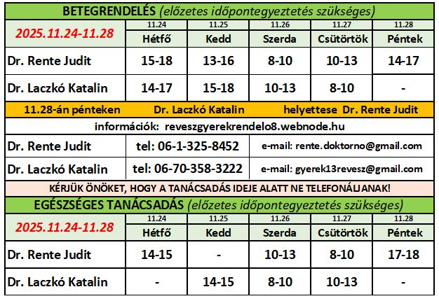 Kérjük, telefonáljon időpont egyeztetés céljából, mielőtt elindulna a rendelőbe!