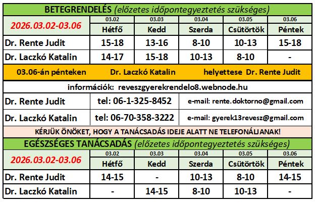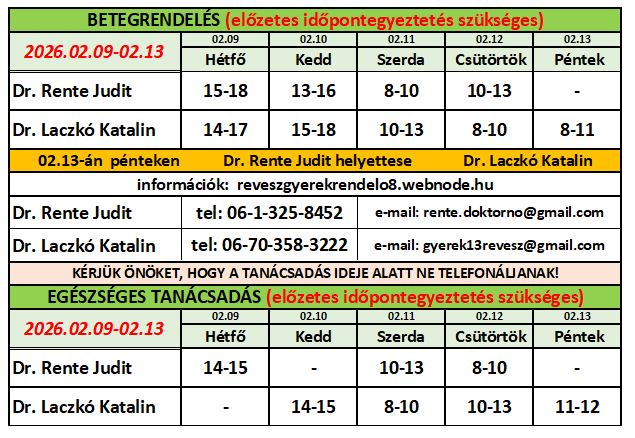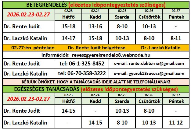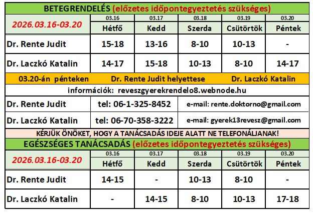 Ha orvosuk szabadságon van, a HELYETTESÍTŐ orvos e-mail címére kell írni és az ő telefonszámát kell hívni a megadott rendelési időben!